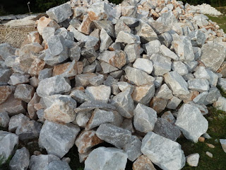 Piles of limestone waiting to be used
